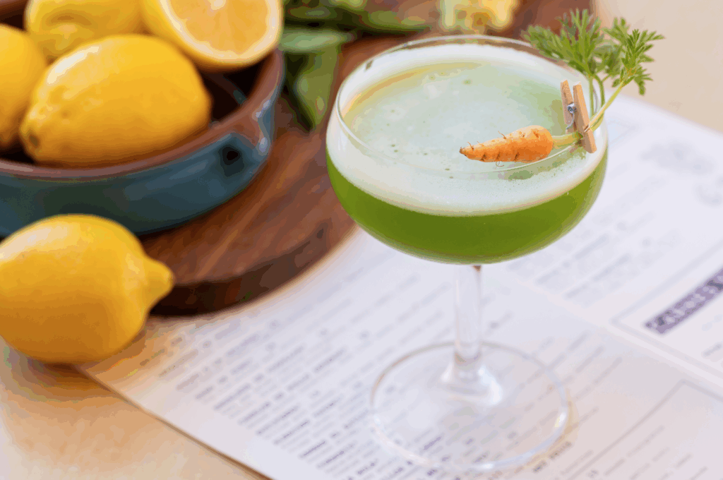 Our semi-private outdoor patio features a climate-controlled area sheltered from the elements, nestled within vibrant green shrubbery. The patio seats up to 34 guests and is available for events. It offers a relaxed, inviting atmosphere perfect for gatherings of all kinds. Guests can enjoy the fresh air while still feeling comfortably tucked away from the bustle.